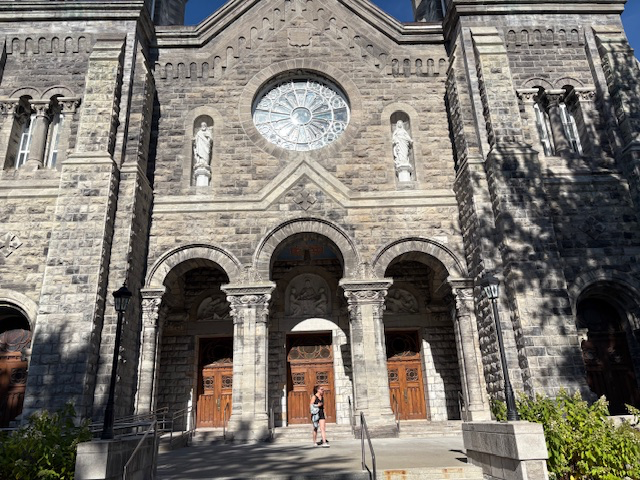 While teaching outside Montreal, we visited the town of Saint-Hyacinthe. I love exploring small towns, and I was not disappointed as we drove into the tree-lined streets, modest homes and then the skyline changed with the cathedral. The Cathedrale de Saint-Hyacinthe dominates its neighborhood. A cathedral of this scale and design speaks to the depth of faith and communal identity that shaped the town.
