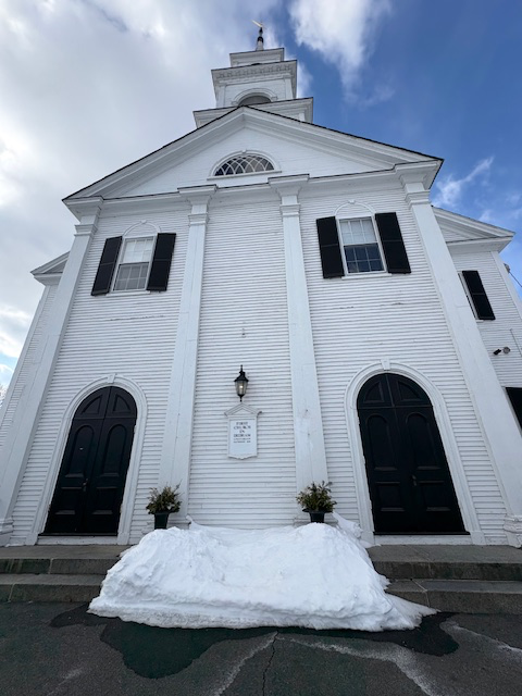 The present church building dates to 1820, replacing earlier meetinghouses that had stood on or near the same site. Designed in the Federal style, with balanced proportions, and clean architectural lines typical of early 19th century New England churches.