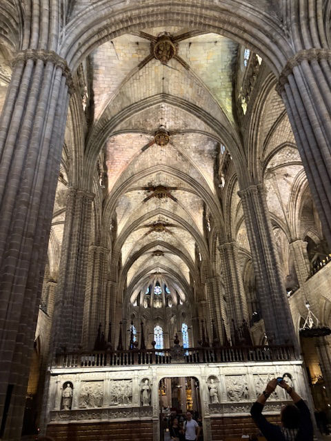 Standing before the towering walls of Barcelona Cathedral, the structure reminds us of just how ambitious medieval builders dared to be. The construction of the cathedral began in 1298, during Barcelona’s golden age as a Mediterranean trading power. What we walked through today is largely the product of more than 150 years of work. The main Gothic body was completed in the mid-15th century while the dramatic facade was added in the later nineteenth century. The result is a blend of medieval heart wrapped in a Gothic revival exterior.