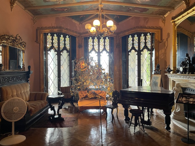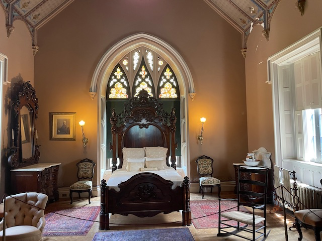 The rooms are filled with intricate woodwork, tall arched windows, and stained glass. The house remains much as it was in Gould’s day. Beyond the mansion, there are 67 acres of landscaped parkland with rolling hills, ancient trees and a view of the Hudson River. This place was chosen as a retreat.