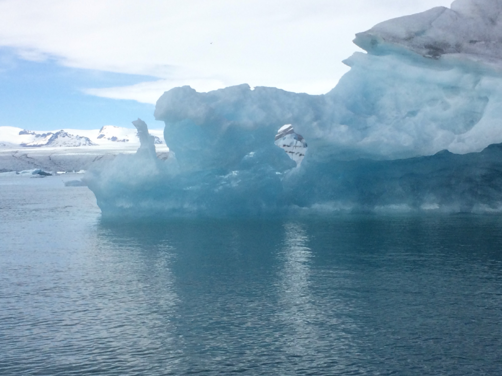 Vatnajokull is the largest glacier in Europe by volume, and it contains some of the oldest ice in Iceland. In its deepest layers, the compressed snow and ice can be hundreds of thousands of years old. Some of the ice drifting beside the boar may have begun forming before modern Iceland existed as we know it.
