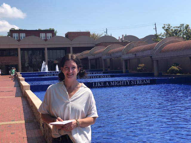 There, surrounded by still water, is the tomb. In the center rests Dr. King and Coretta Scott King beside him. The white marble stands quietly within the reflecting pool, open to the sky, simple yet deeply powerful. The words engraved there, “Free at last, Free at last. Thank God Almighty I’m Free at last,”
