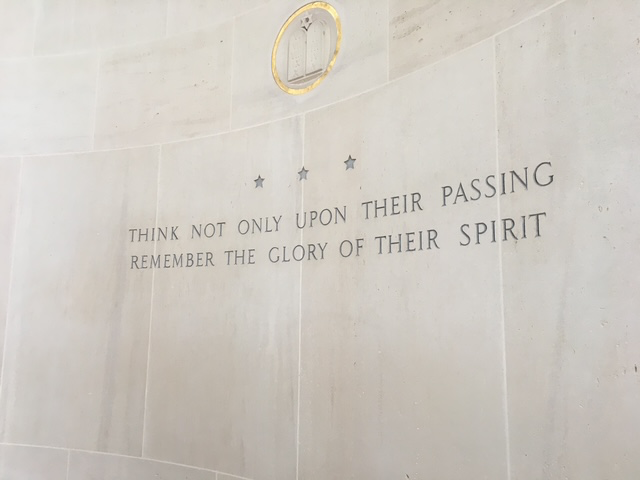 At the heart of the cemetery stands a bronze statue, “The Spirit of American Youth Rising from the Waves.” This is a statue of a young man with face turned upward and eyes open. The statue captures the strength of a generation who gave everything before their lives had fully begun.