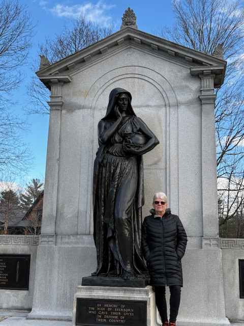 On either side of the central figure are bronze plaques that list the names of Sherborn residents who died in defense of their country. This included men who served in the Civil War, World War I and beyond and among the sixteen Civil War casualties are two Sherborn men who fought with the 54th Massachusetts Regiment, the first African American unit resided in the North.